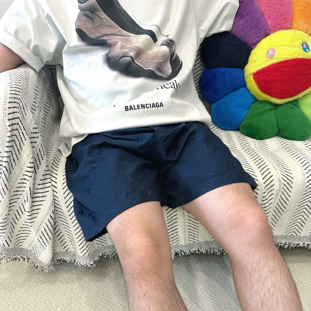 These navy blue shorts from BLCG deliver effortless cool with their allover logo-jacquard finish. Made from lightweight technical fabric, they offer both comfort and street-ready appeal. The elastic waistband ensures a relaxed fit, while the tonal Balenciaga pattern adds a subtle yet recognizable touch of luxury. A go-to piece for elevated off-duty styling.