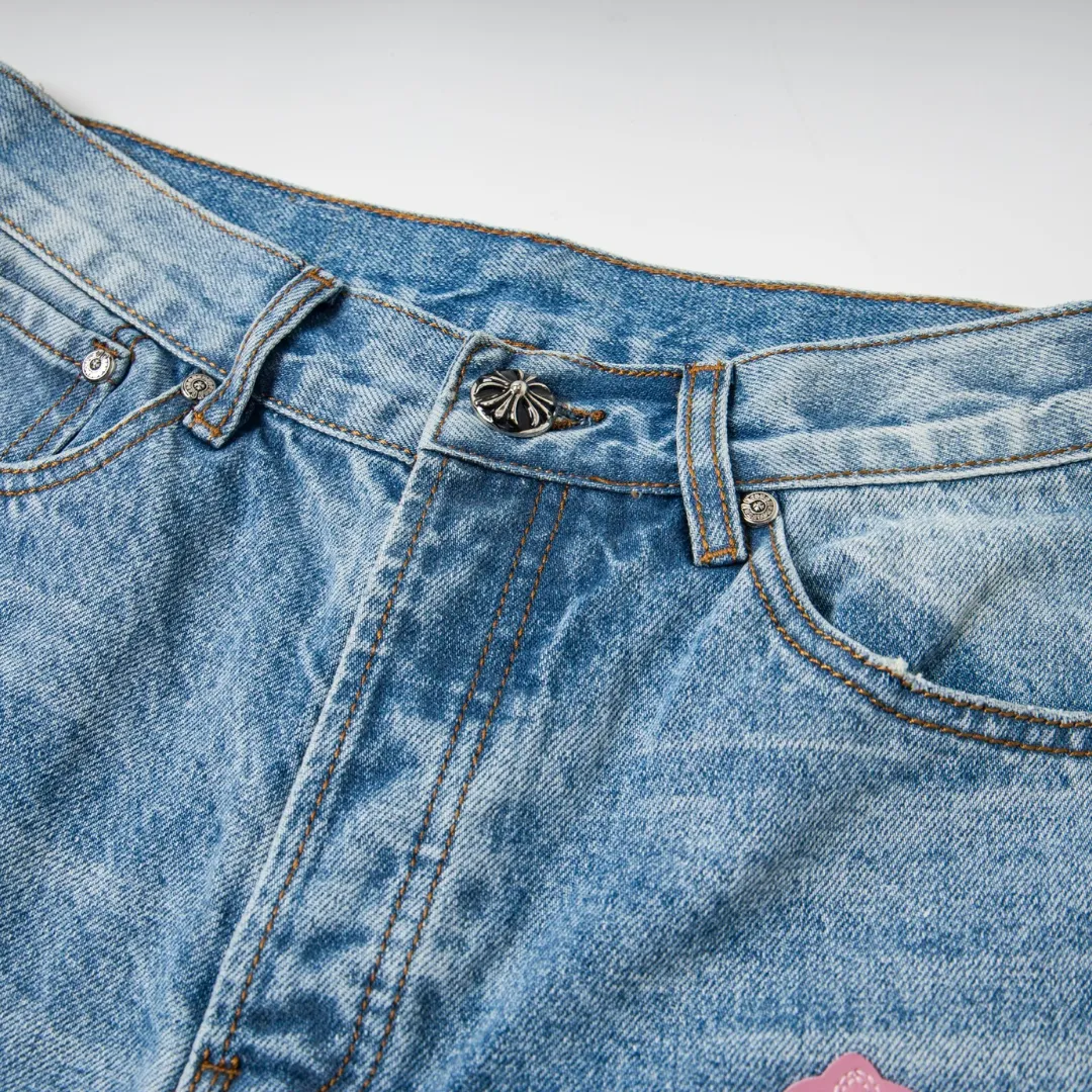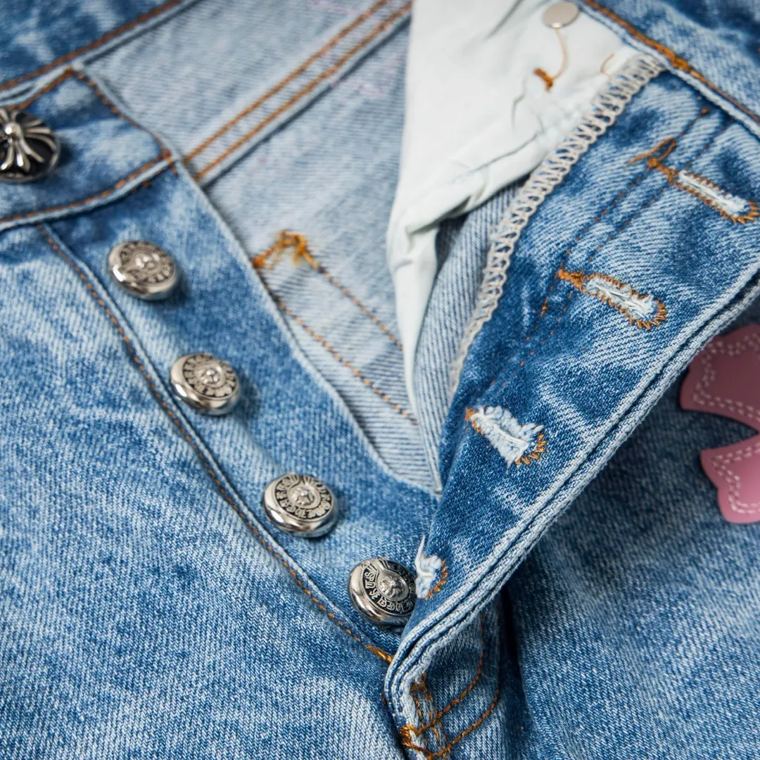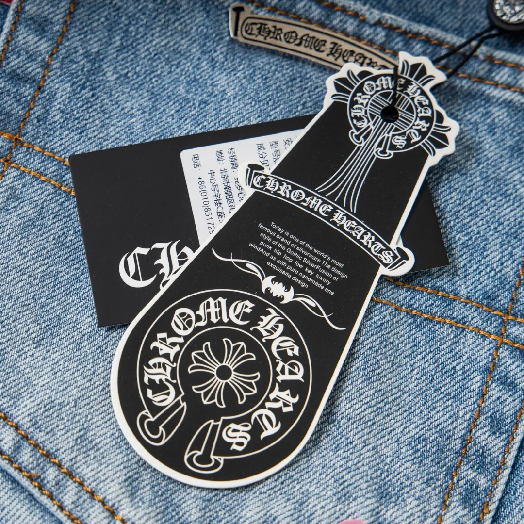 Description: Each pair of Chrome Hearts jeans is a work of art steeped in a gritty, high-fashion aesthetic. With iconic details like custom crosses and unique leather patches, these jeans are a statement of fearless individuality and raw attitude. Whether you pair them with a simple tee or a bold jacket, these jeans will be the perfect finishing touch, helping you dominate the street style scene and capture every eye.