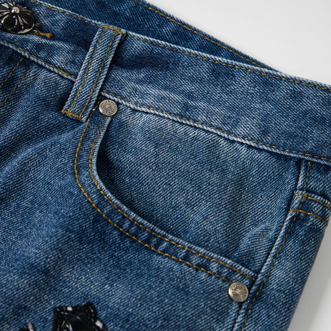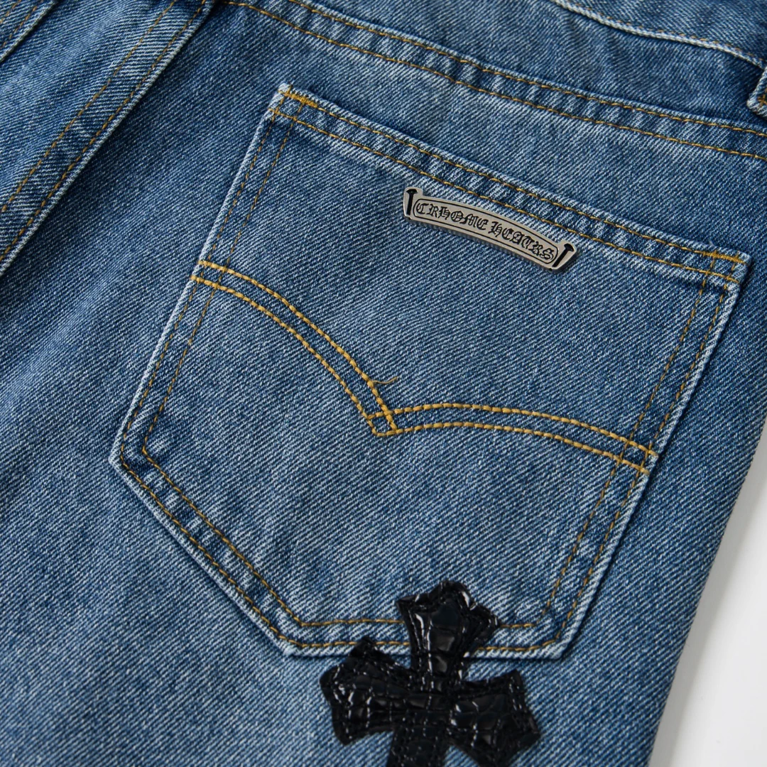 Description: Each pair of Chrome Hearts jeans is a work of art steeped in a gritty, high-fashion aesthetic. With iconic details like custom crosses and unique leather patches, these jeans are a statement of fearless individuality and raw attitude. Whether you pair them with a simple tee or a bold jacket, these jeans will be the perfect finishing touch, helping you dominate the street style scene and capture every eye.