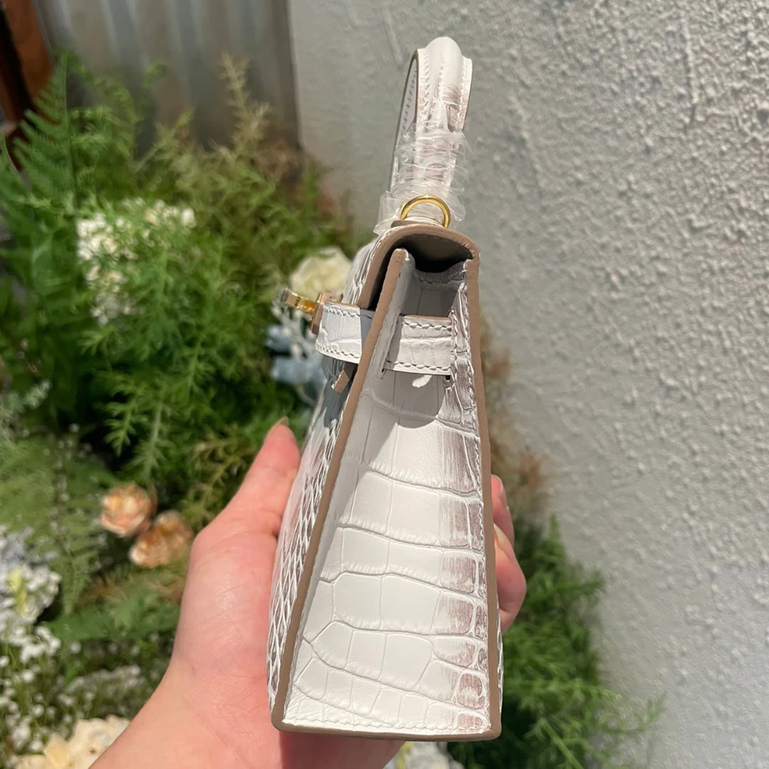 HM Kelly Limited White Shocking Matte Alligator Bag – HM0060