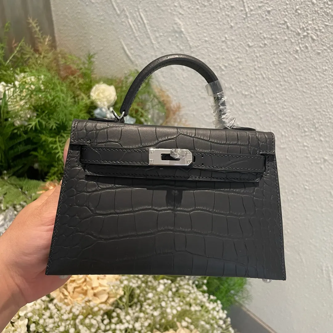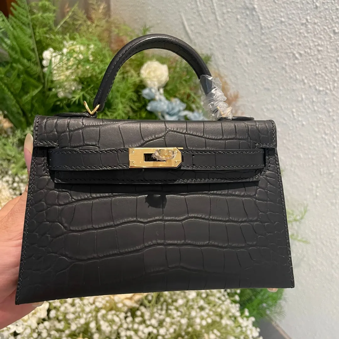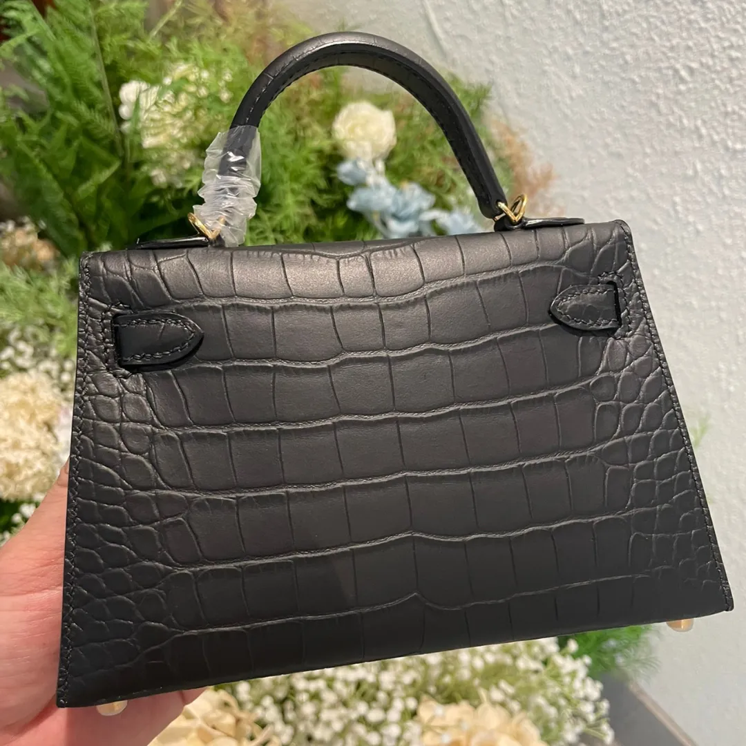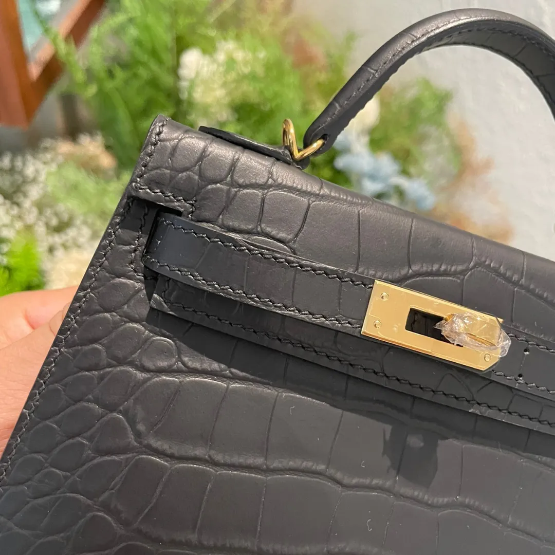 HM Kelly Sellier Black Shocking Matte Alligator Bag – HM0068