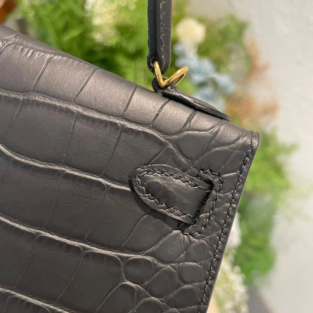 Name: HM Kelly Sellier Black Shocking Matte Alligator Bag