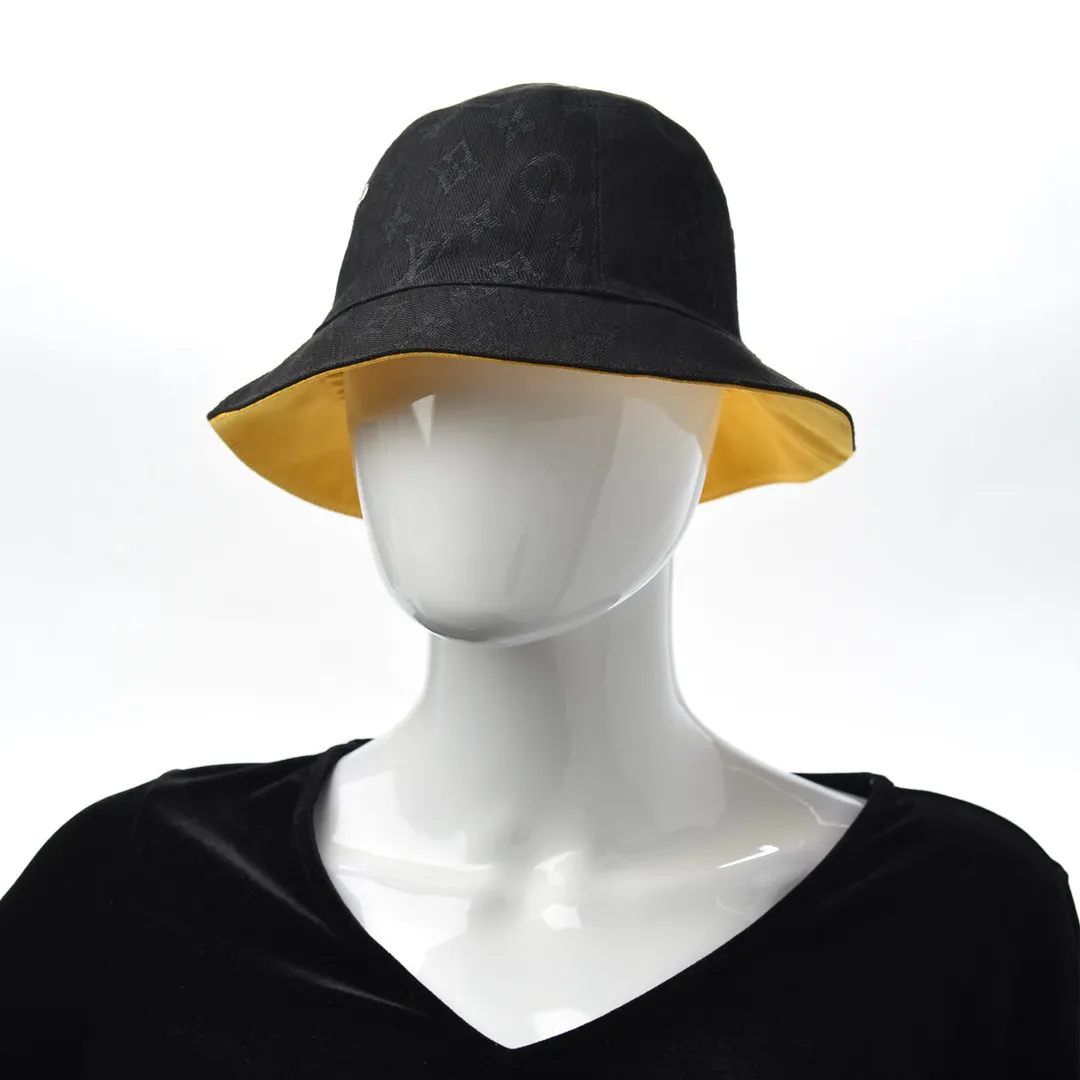 LOV Denim Monogram Reversible Bob Bucket Hat Black Yellow – LOV0025