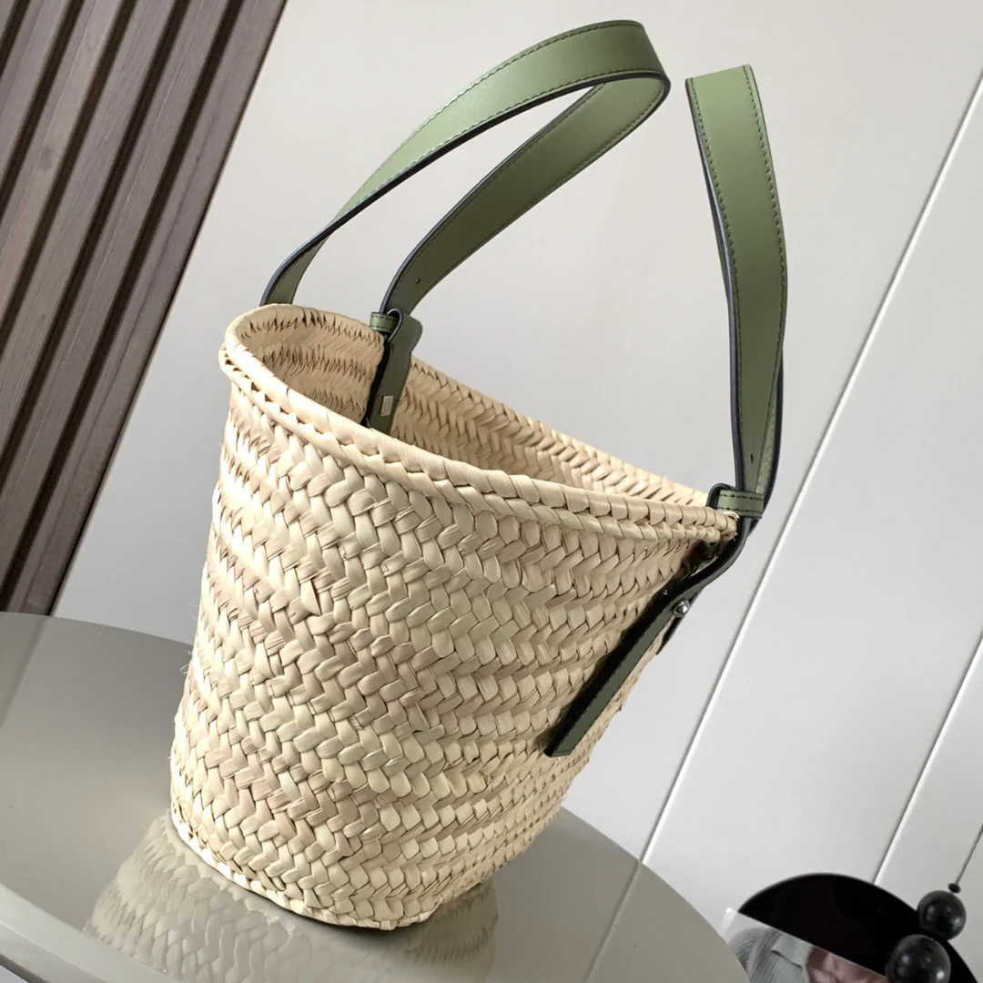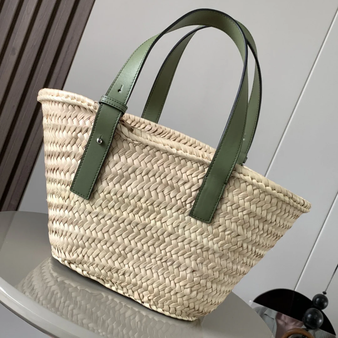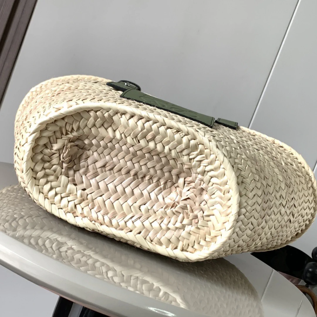 LW Raffia Beige Green Basket Bag – LW0008