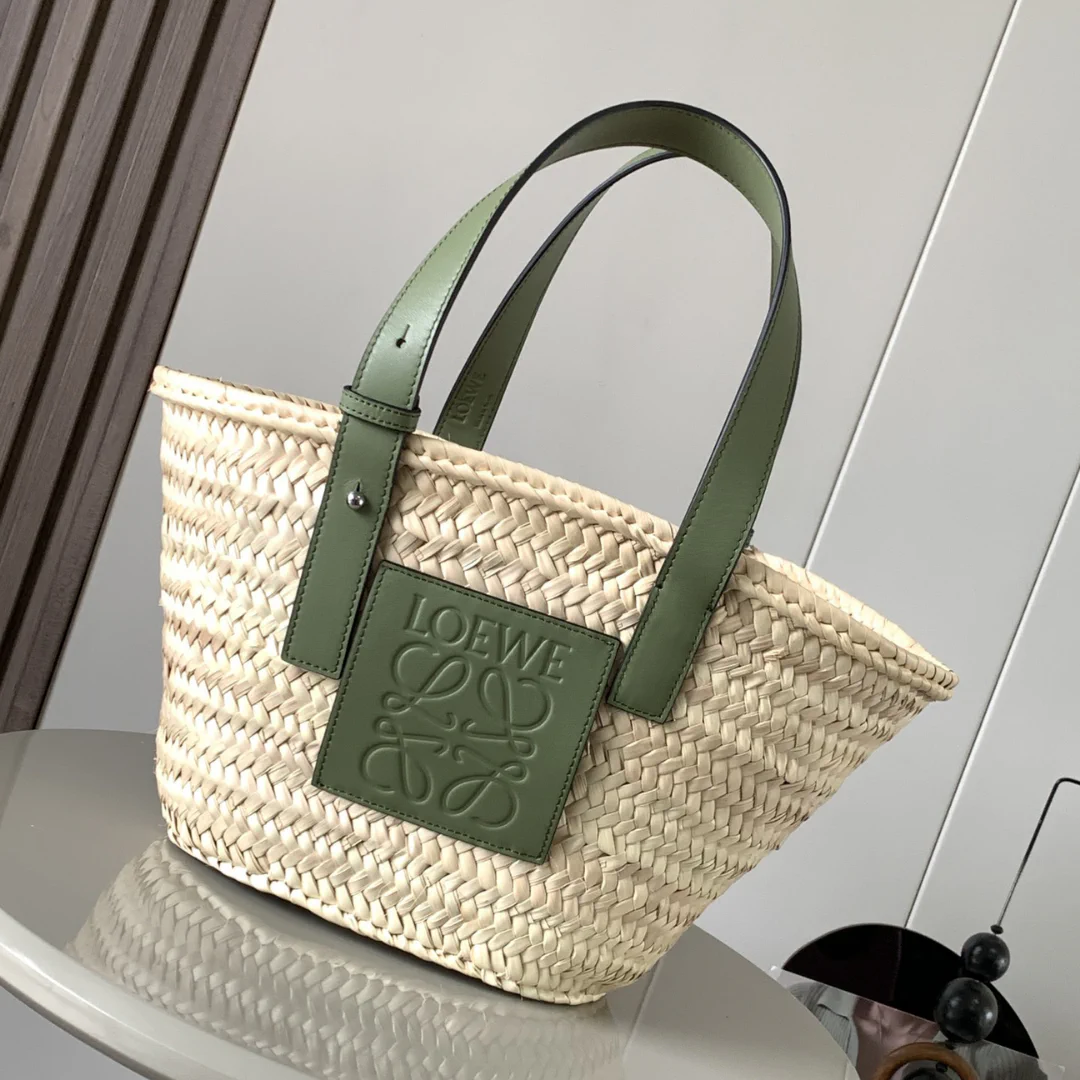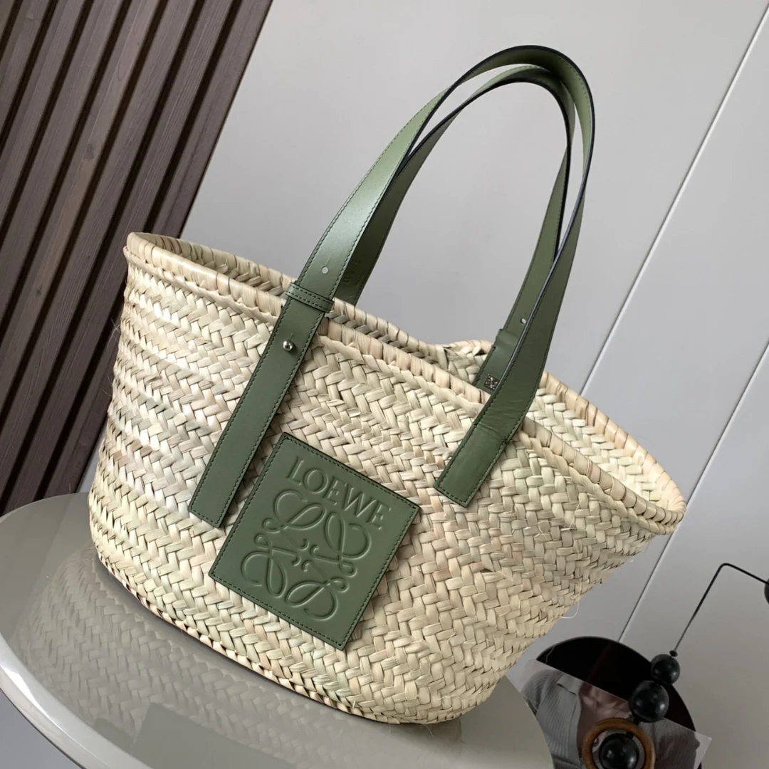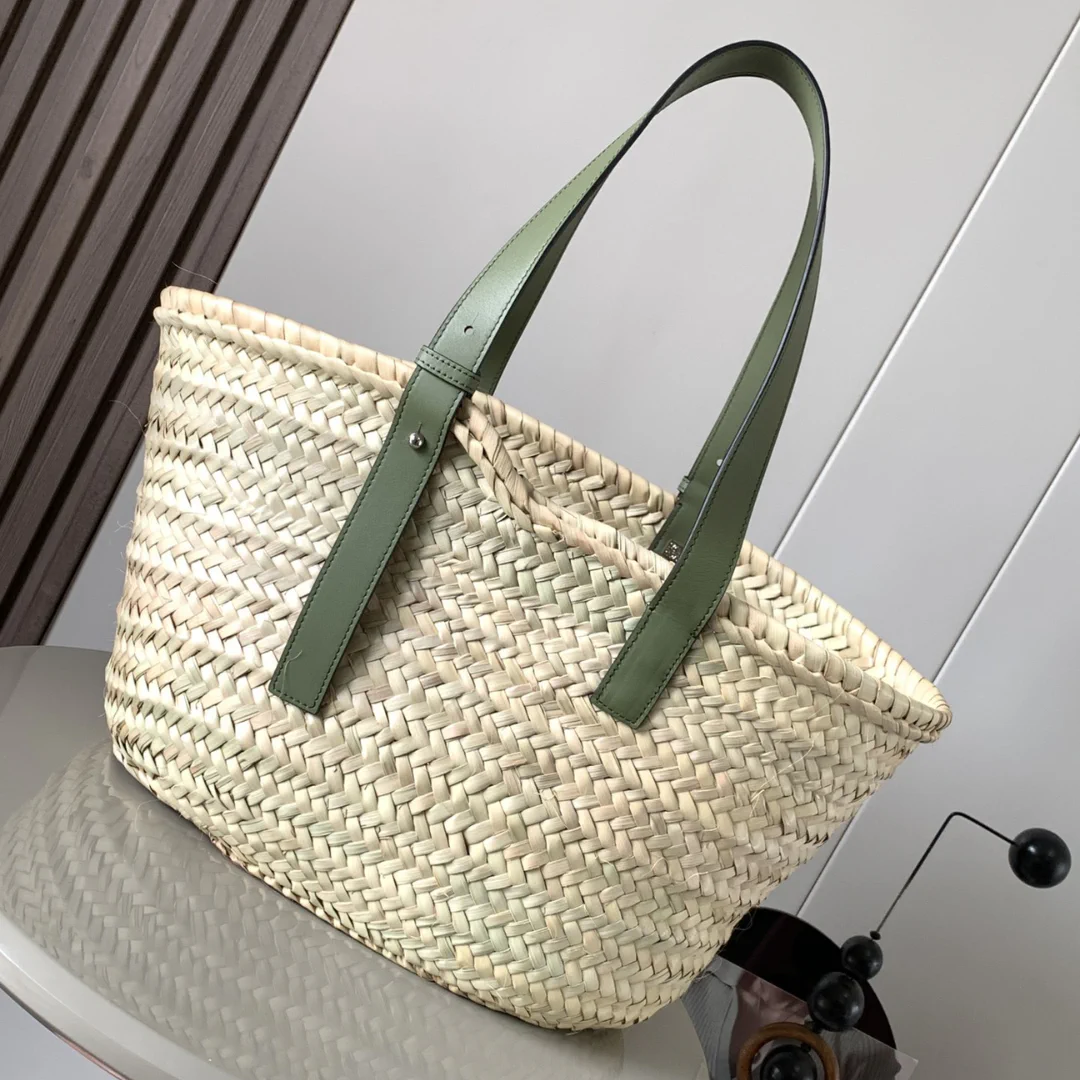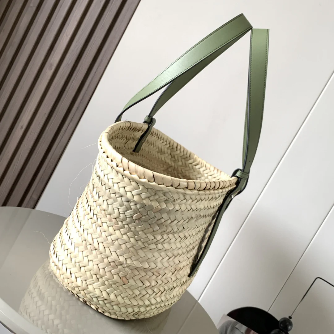 LW Raffia Beige Green Basket Bag – LW0008
