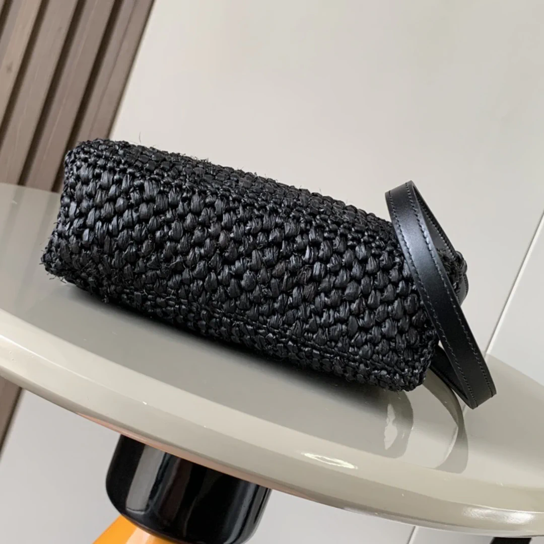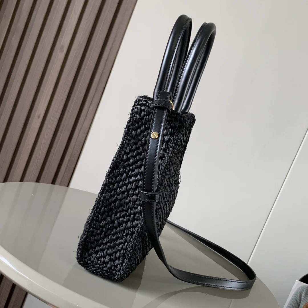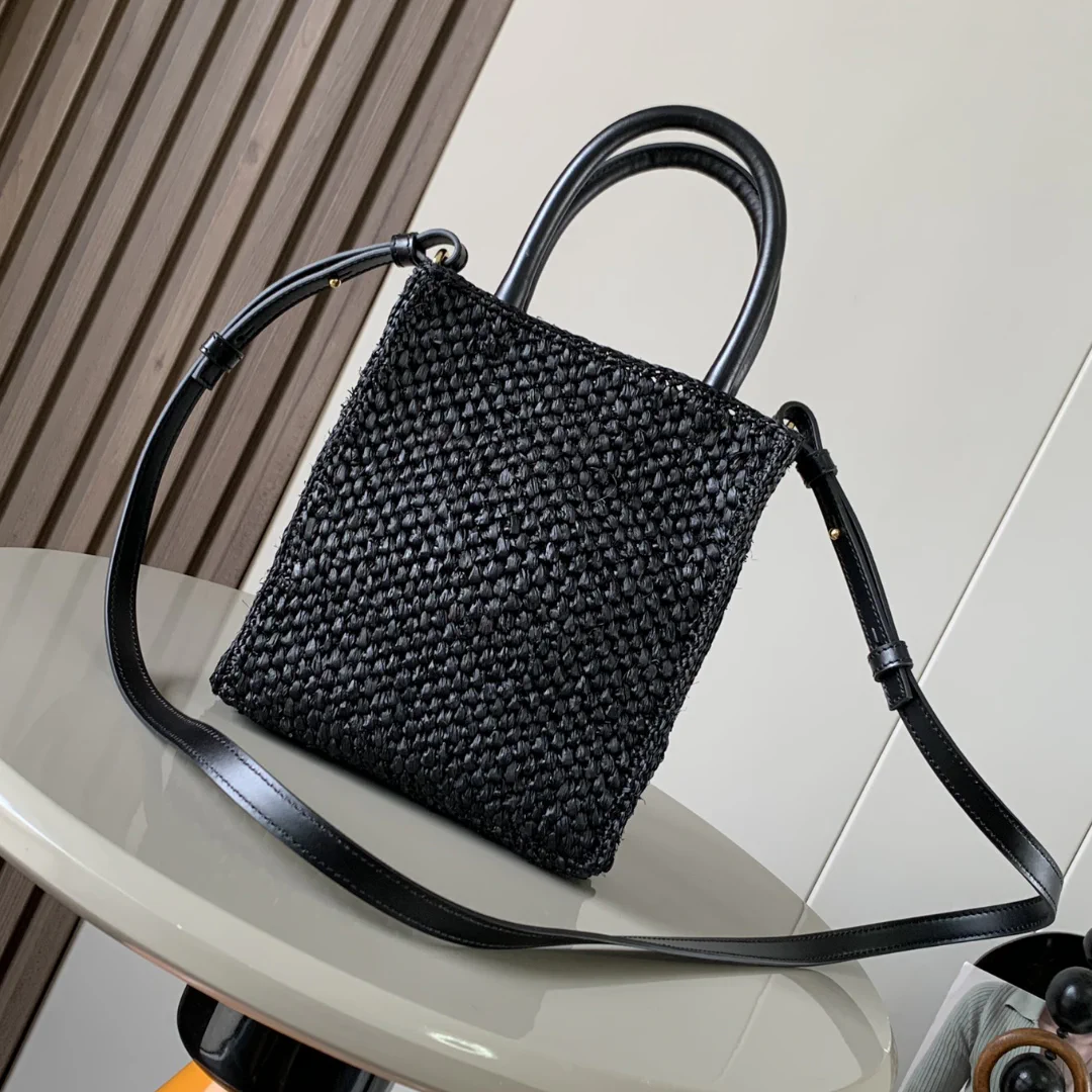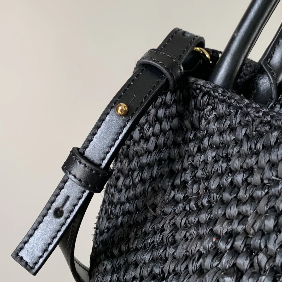 Description: This bag combines a structured silhouette with a relaxed, modern aesthetic. The design is highlighted by its drawstring closure, which cinches the top, and a distinctive square base. It’s a study in refined craftsmanship, blending natural texture with clean lines for a look that’s both elegant and casual.