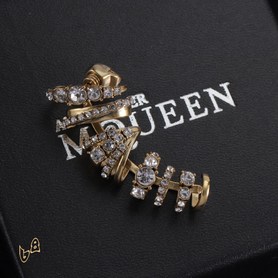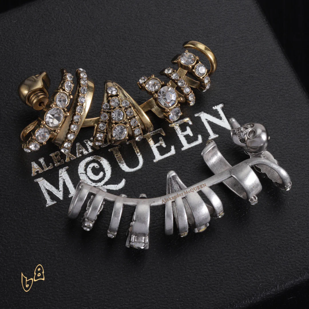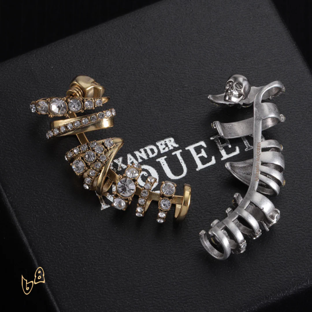 Description: These earrings are a striking fusion of rebellion and elegance. Crafted with meticulous detail, they capture the essence of the McQueen aesthetic. Whether you choose a subtle design or a bold, dramatic piece, these earrings will frame your face and command attention, adding an air of mystery and confidence to your style.