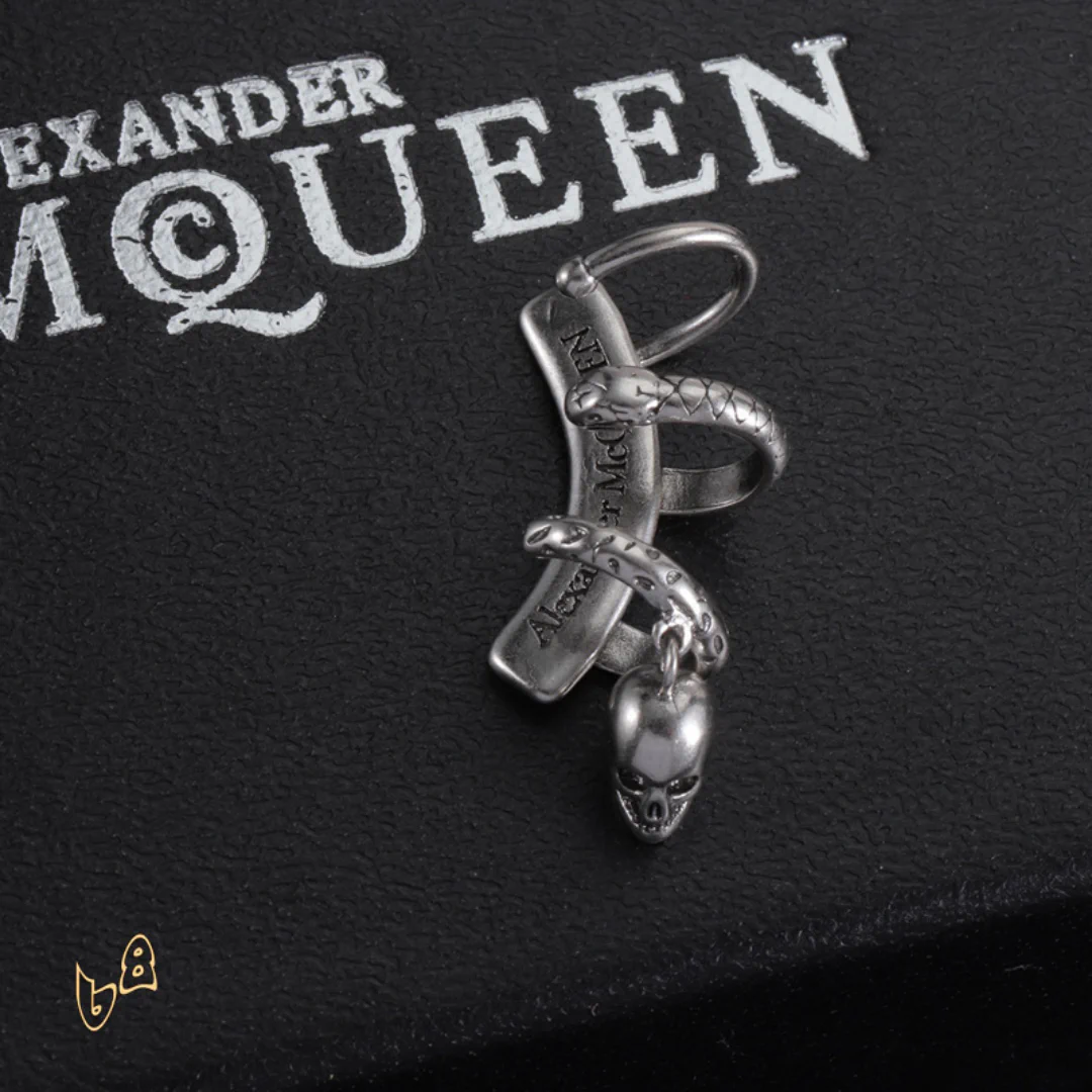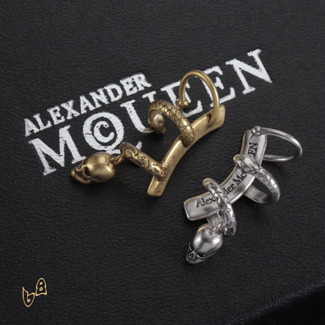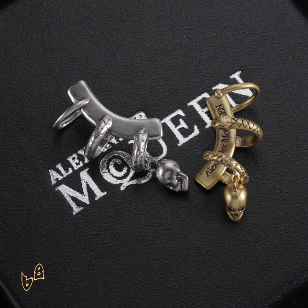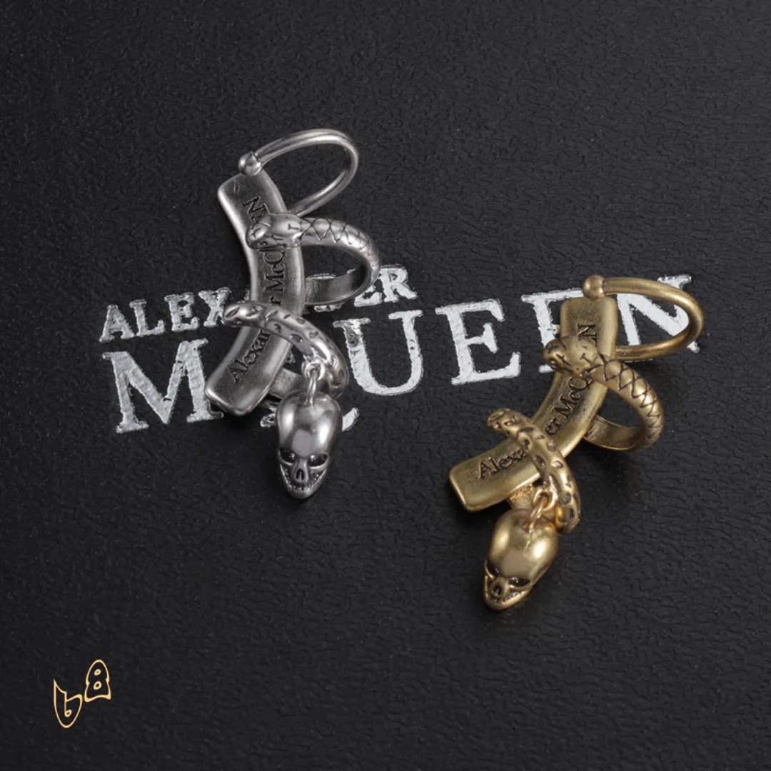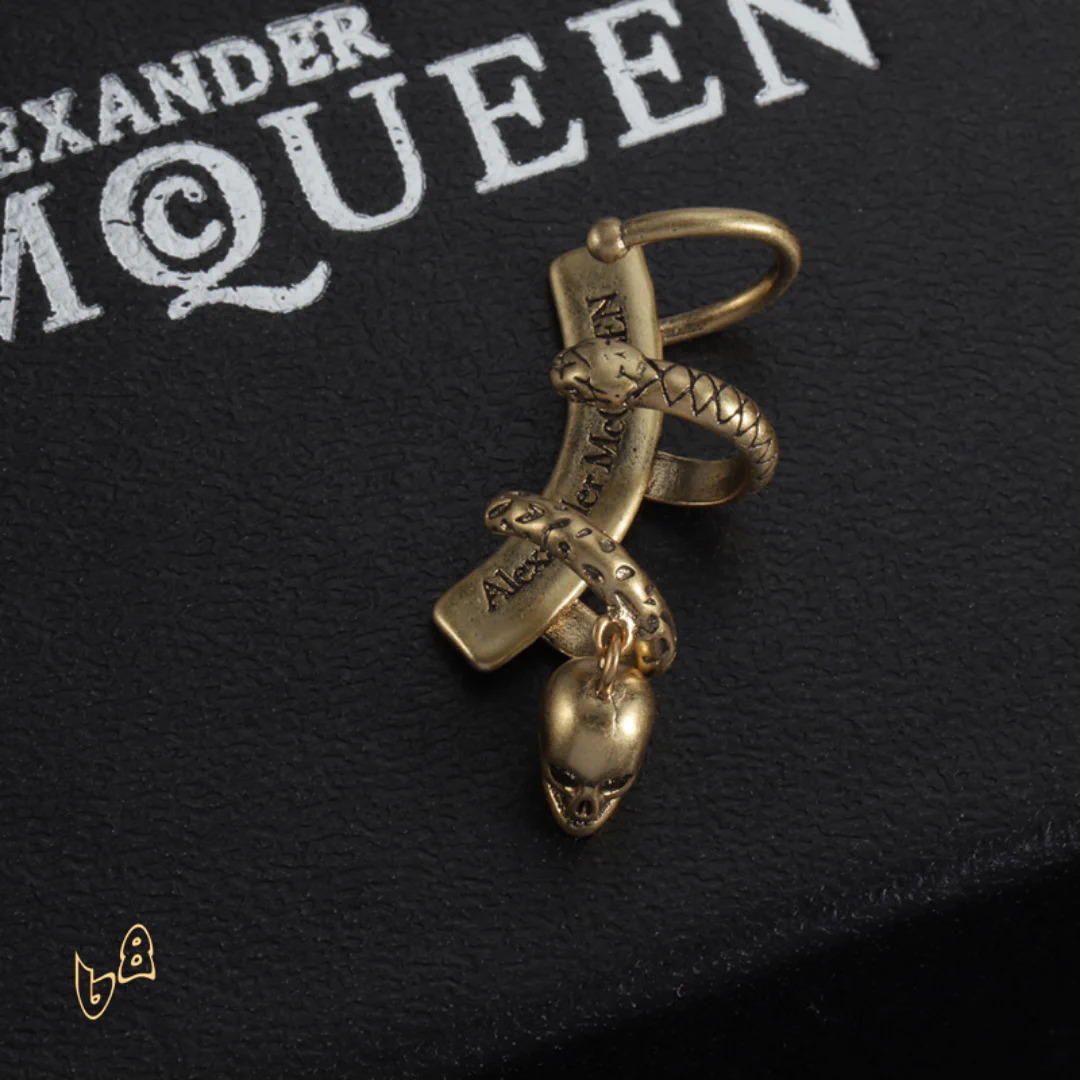 Description: These earrings are a striking fusion of rebellion and elegance. Crafted with meticulous detail, they capture the essence of the McQueen aesthetic. Whether you choose a subtle design or a bold, dramatic piece, these earrings will frame your face and command attention, adding an air of mystery and confidence to your style.