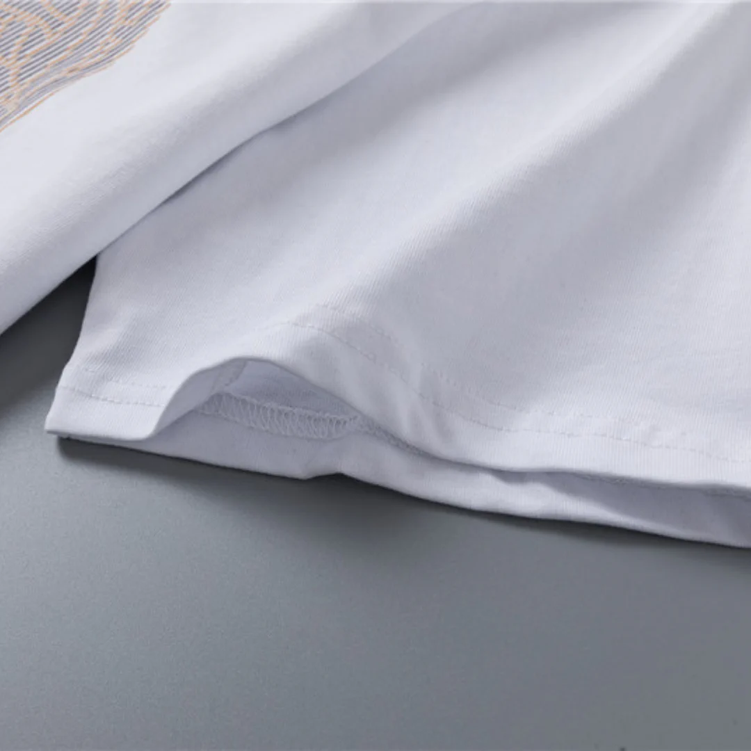 These T-shirts are crafted from ultra-soft cotton jersey, ensuring comfort. Designed for a relaxed fit, it features unique cross-stitching that blends modern design with thoughtful details